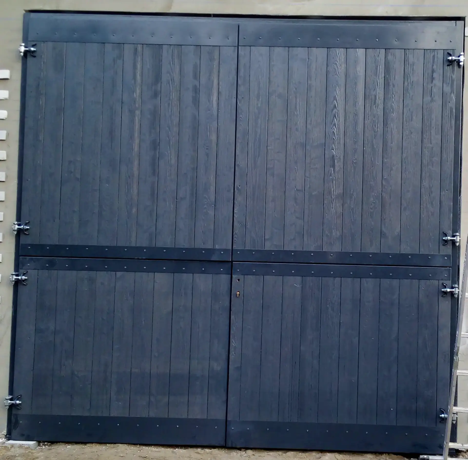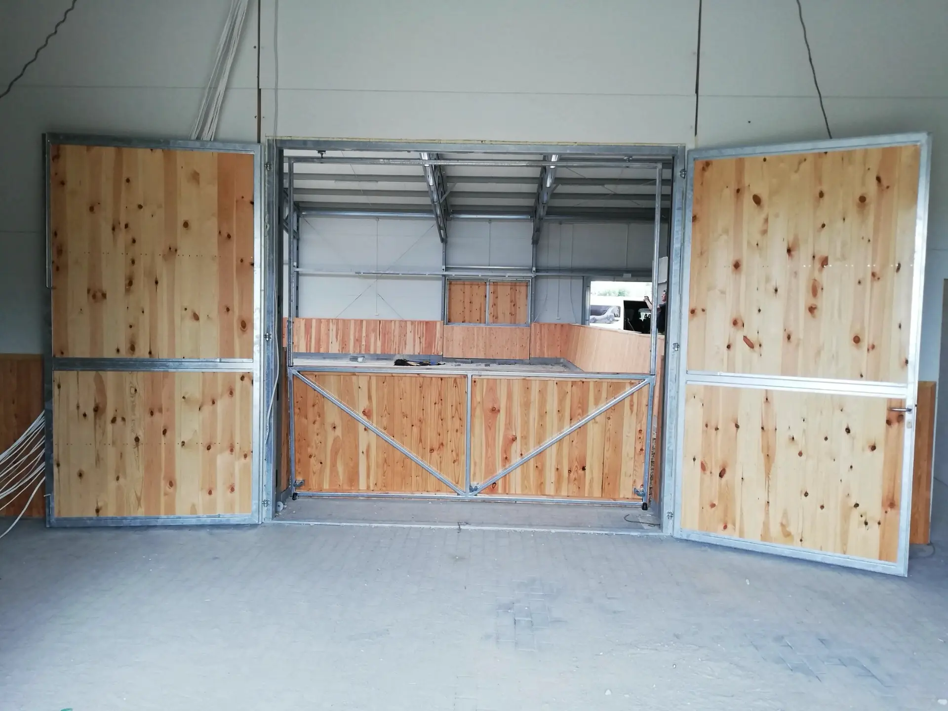Ten minimalistyczny model pełnej, drewnianej bramy stajennej to klasyka gatunku. Proste i symetryczne doskonale sprawdzą się w stajniach, w których liczy się przede wszystkim praktyczność rozwiązań.