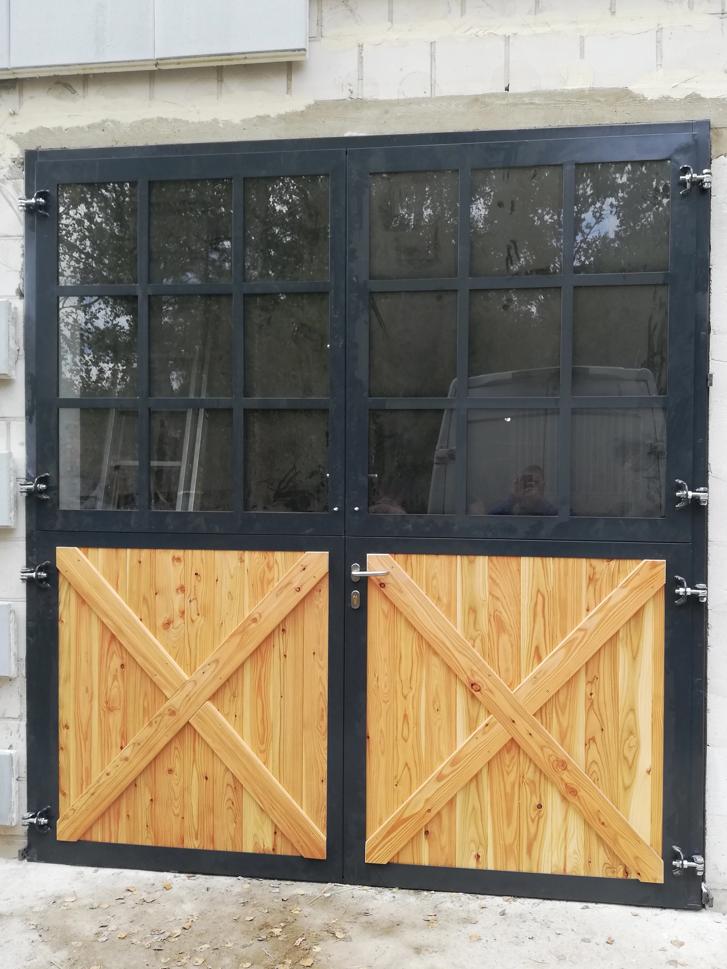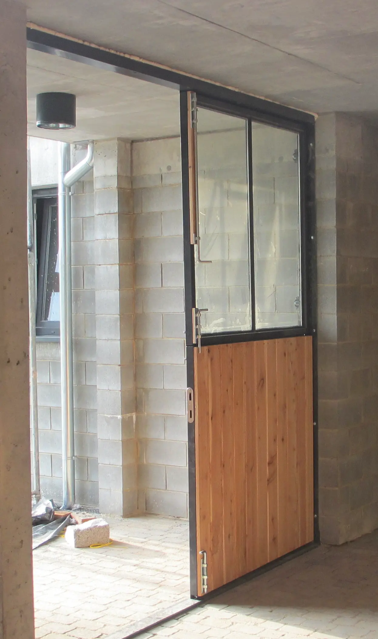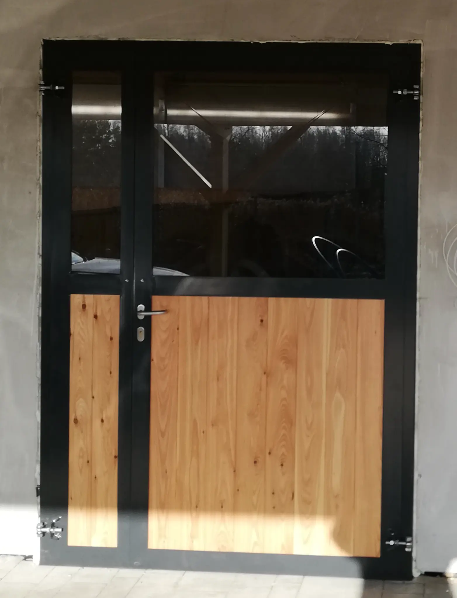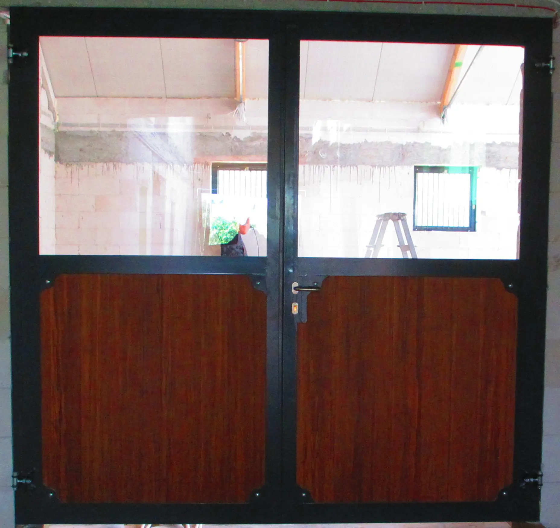 Dolna część tej bramy stajennej wypełniona jest deskami, w górnej znajdują się okna. Tego typu rozwiązanie pozwala zajrzeć do środka bez otwierania całości i wychładzania jej zimą, a także przepuszcza światło dzienne, niezbędne do regulacji cyklu dobowego zwierząt.