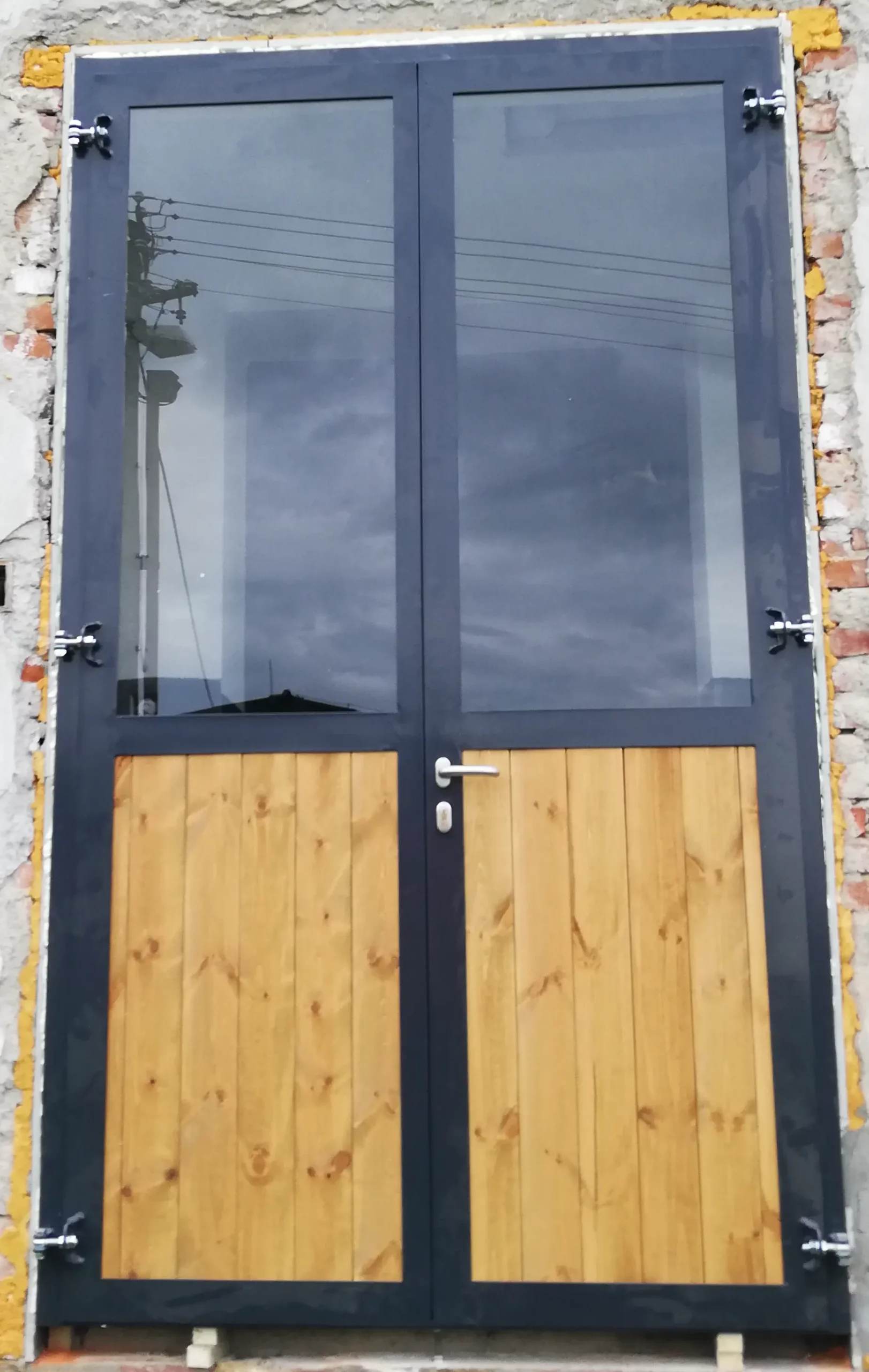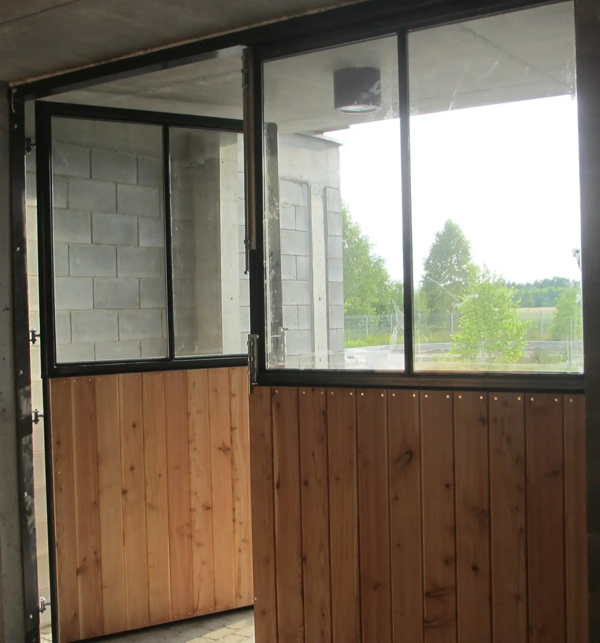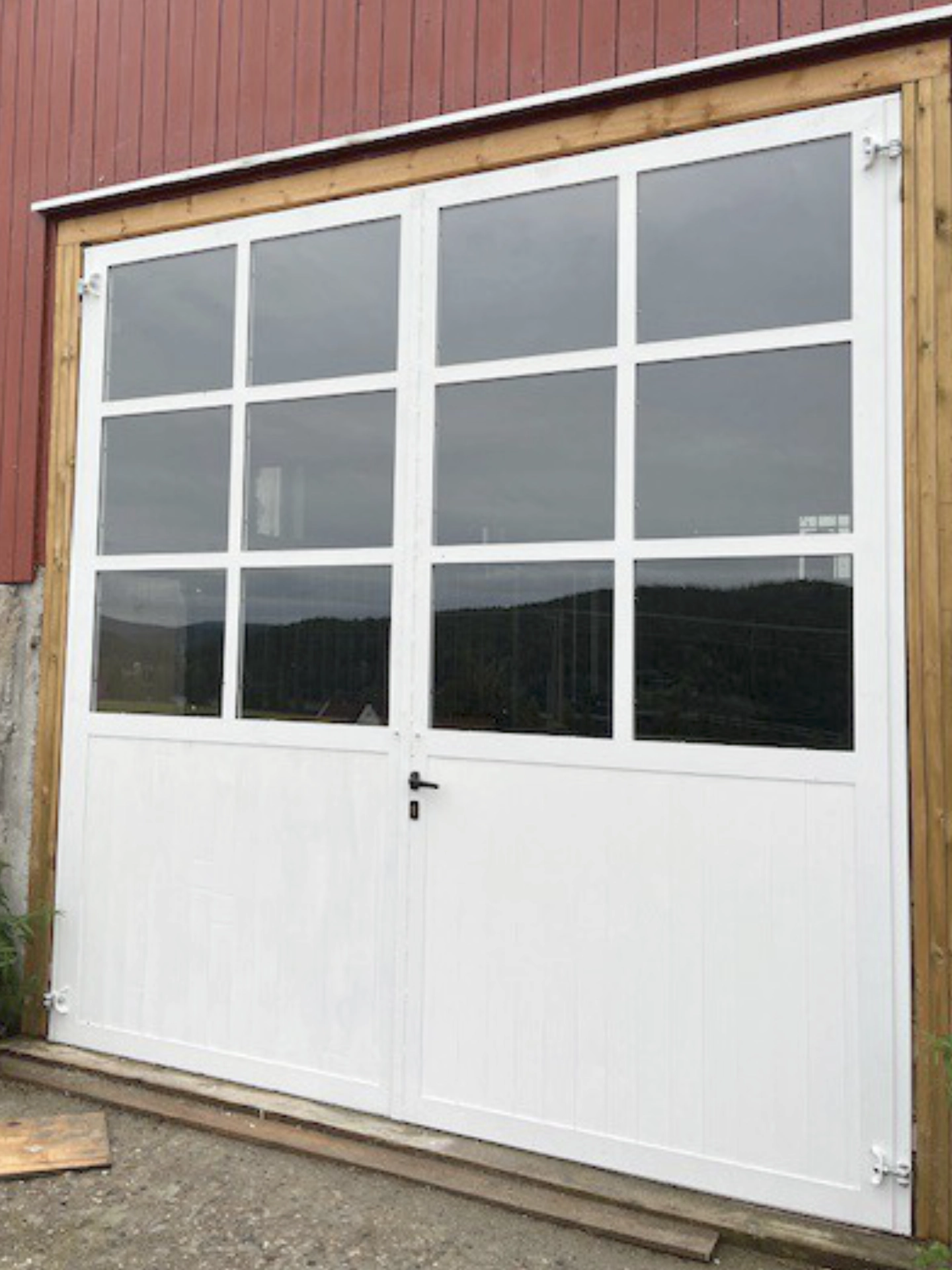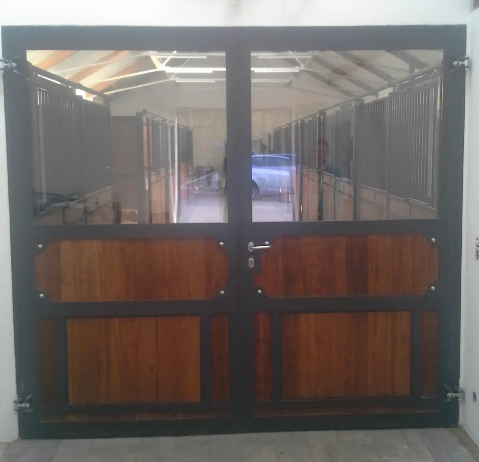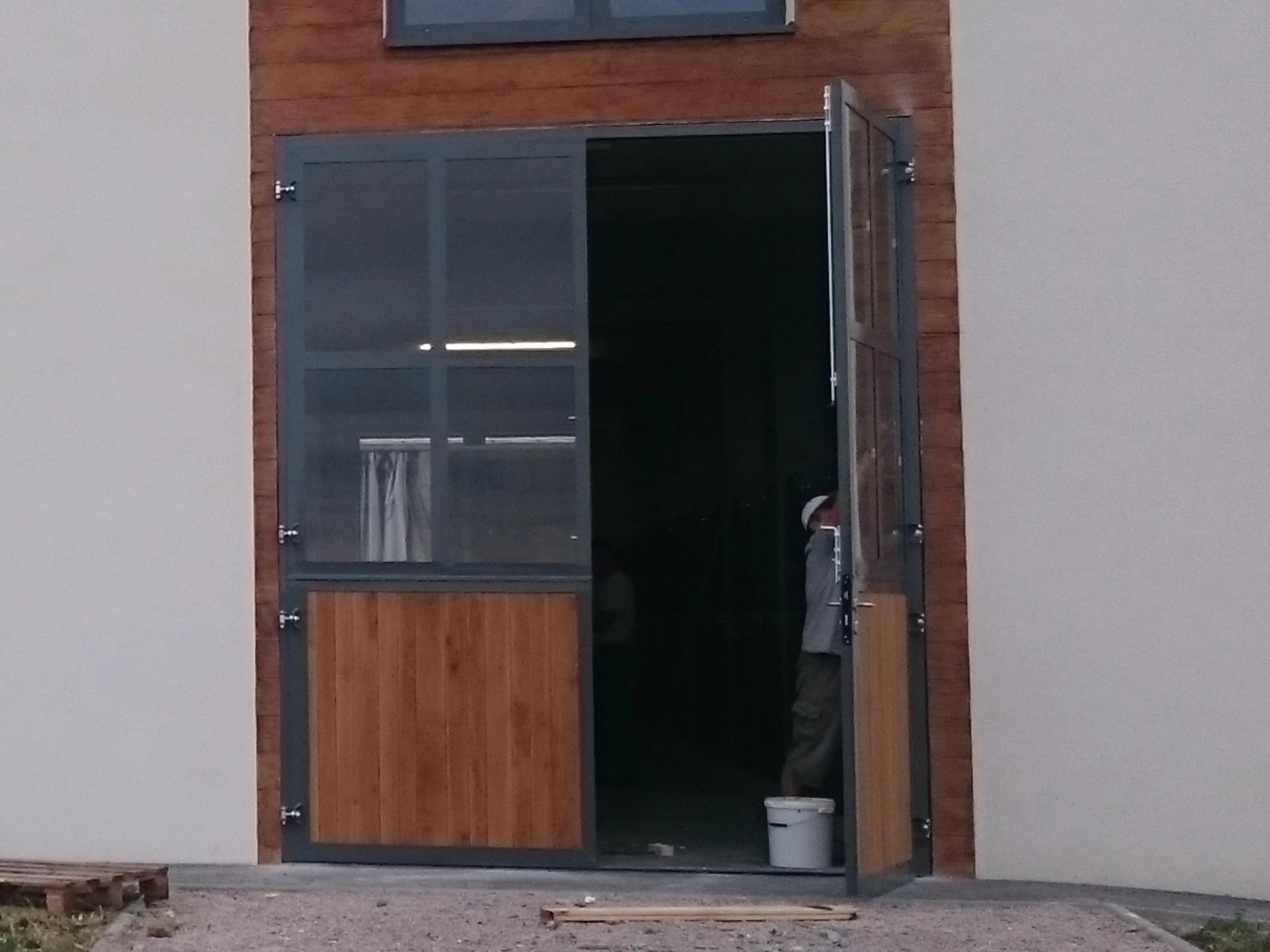 Dolna część tej bramy stajennej wypełniona jest deskami, w górnej znajdują się okna. Tego typu rozwiązanie pozwala zajrzeć do środka bez otwierania całości i wychładzania jej zimą, a także przepuszcza światło dzienne, niezbędne do regulacji cyklu dobowego zwierząt.