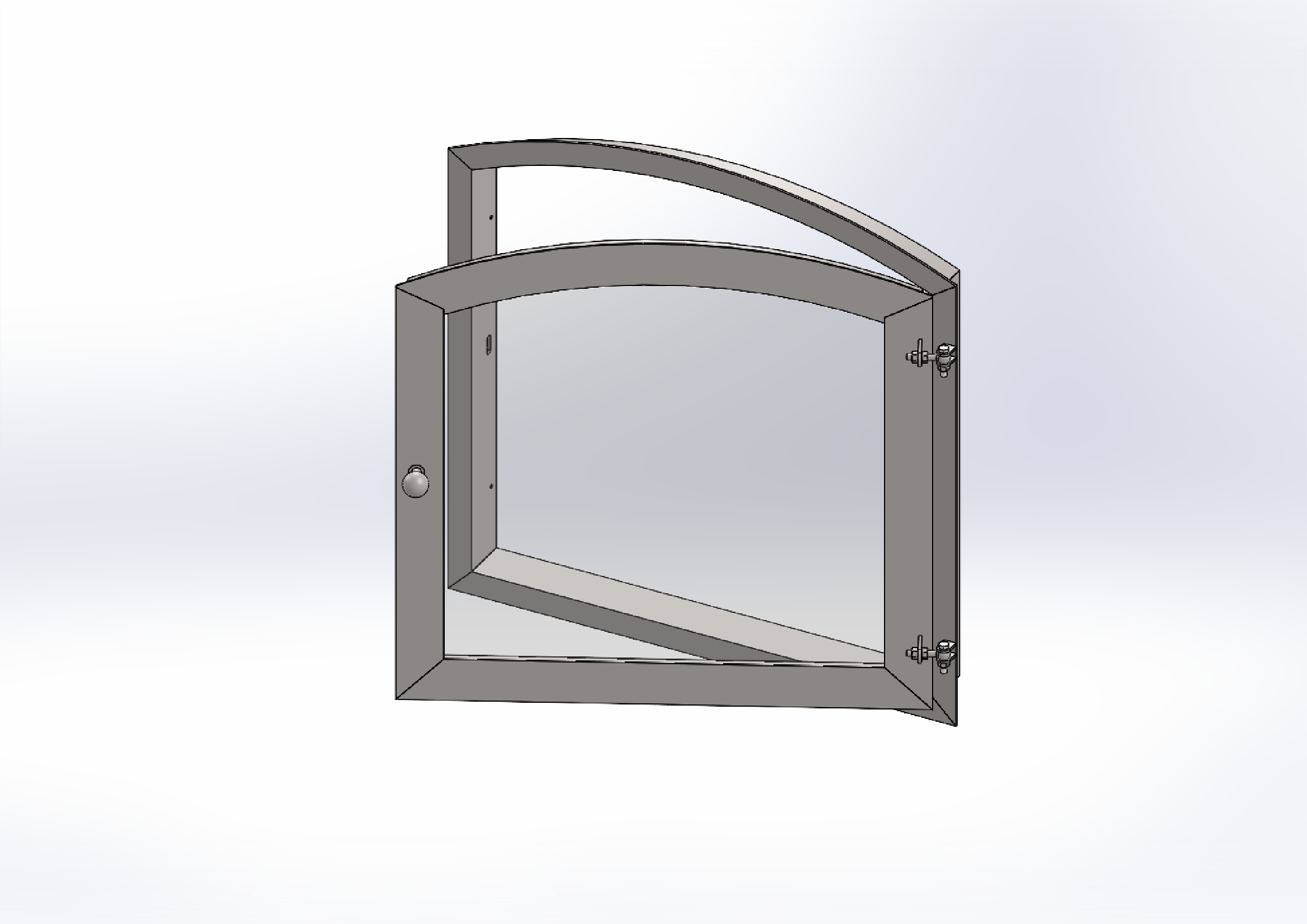 Okno posiada elegancki, łukowaty kształt, co nadaje mu estetyczny i nowoczesny wygląd.