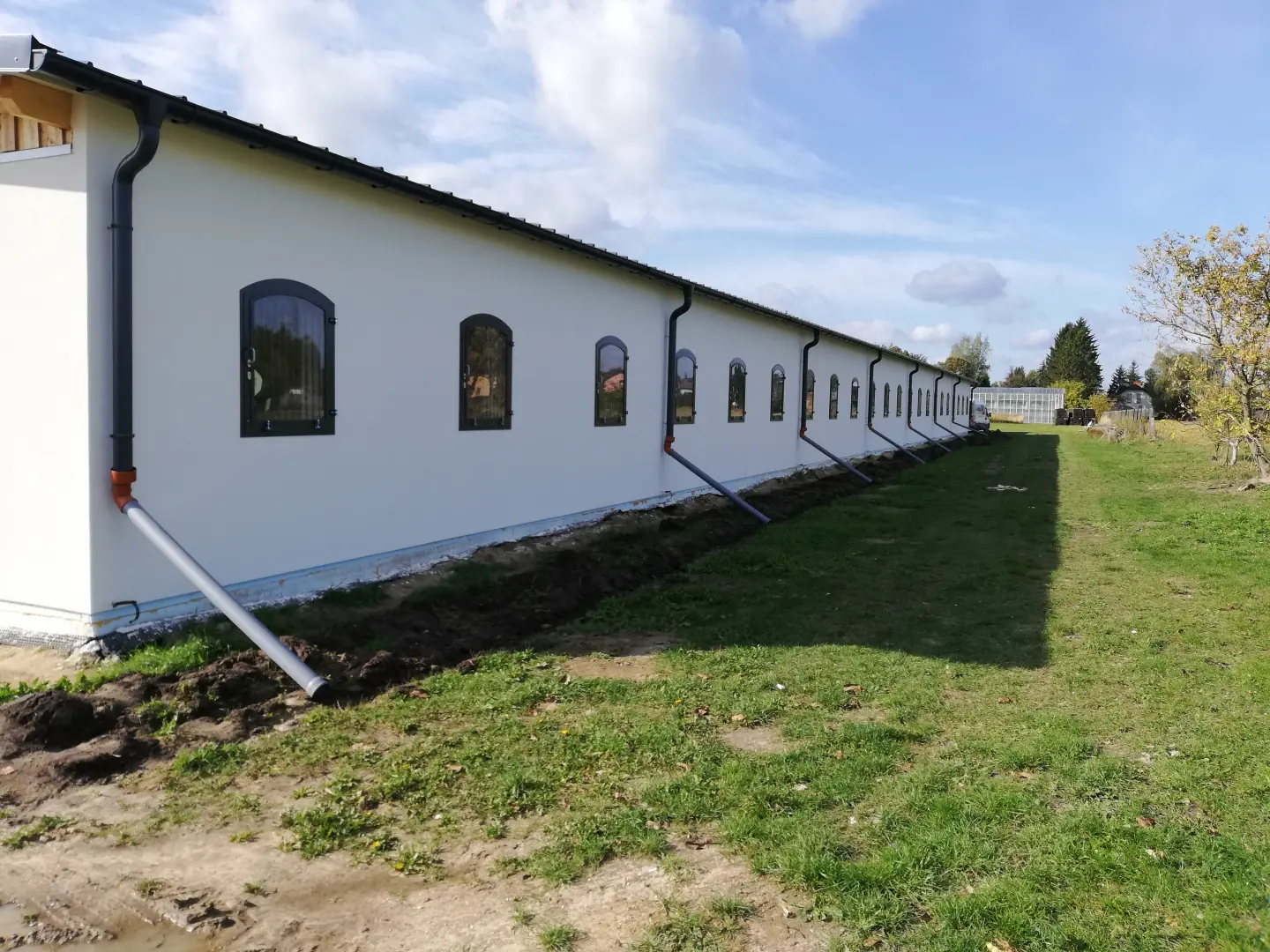 Deski modrzewiowe zaimpregnowane, konstrukcja ocynkowana i pomalowana proszkowo, dodatkowo wentylacja w deskach, szafka, zawieszka na derkę, tabliczka informacyjna. Dodatkowe otwieranie całego frontu.
