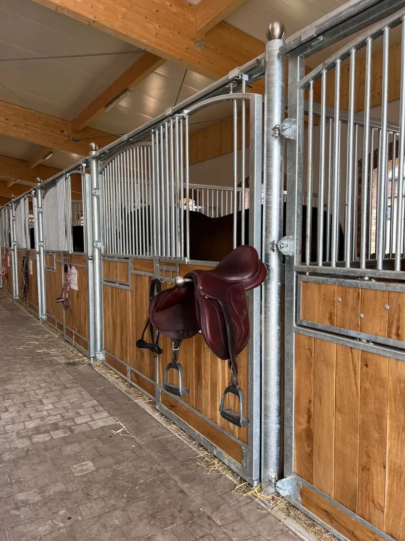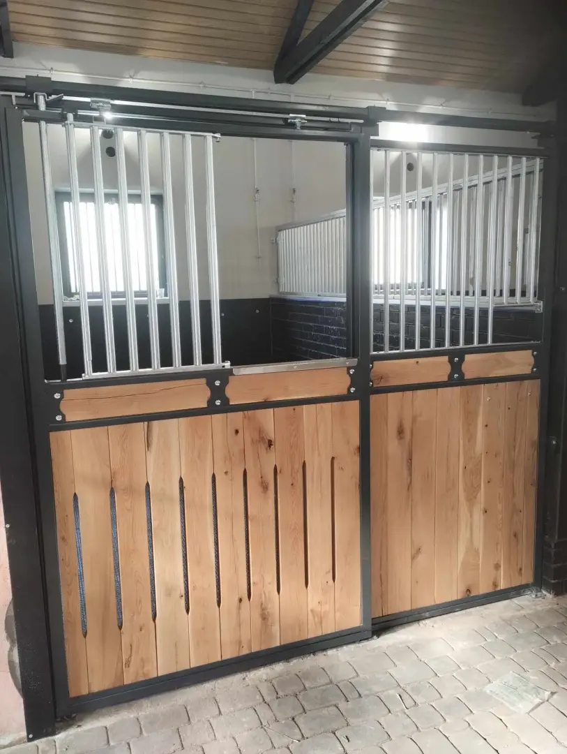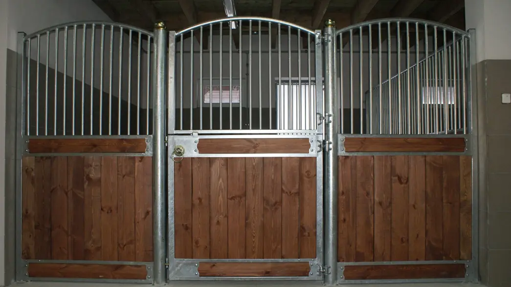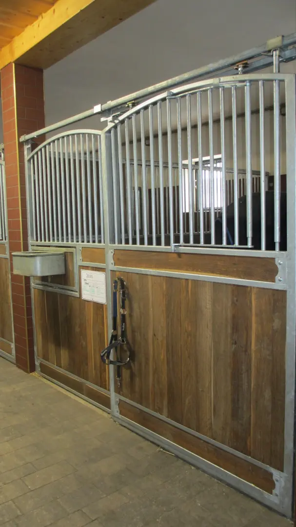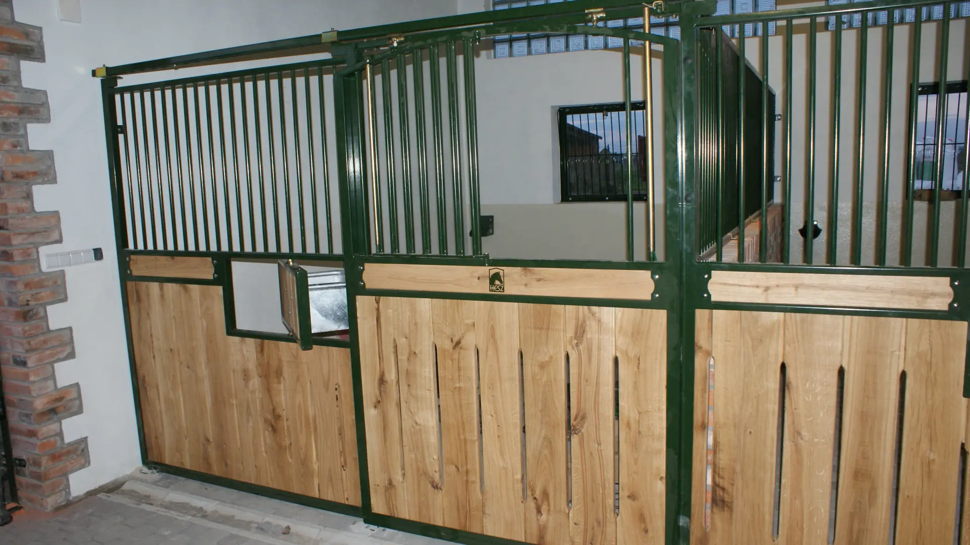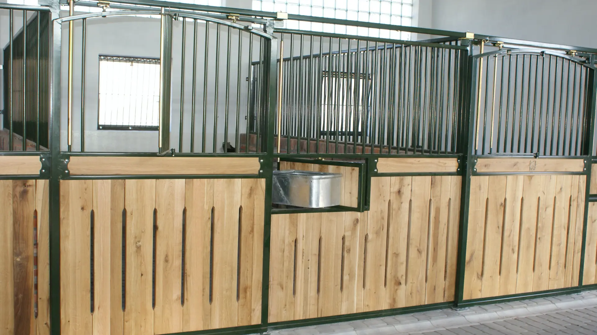 Deski dębowe zaimpregnowane, konstrukcja ocynkowana, dodatkowo ramka obrotowa koryta, wysuwana zawieszka na siodło, dodatkowa opcja otwierania całego frontu.